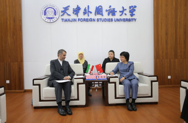 近日,伊朗驻华大使馆文化参赞尼阿迈图拉伊朗扎德一行3人到访米兰网页版。天外校长李迎迎会见来访客人。李迎迎对尼阿迈图拉伊朗扎德一行的首次来访表示热烈欢迎,并简要介绍了天外60年的办学历史、“外语突出、专业多样”的培养体系、“面向未来、应对挑战”的复合型国际化人才培养模式、“主动思变、融入科技”的数字化产业学院、“融通中外、对话全球”的孔院合作大学联盟等情况,重点介绍了天外响应国家“一带一路”倡议,于2017年开设了一批“一带一路”共建国家语言专业,为“一带一路”共建国家的合作交流提供语言服务和人才支撑。截至目前,波斯语专业已培养两届学生,近30人。感谢伊朗驻华大使馆的支持与帮助,天外已与伊朗伊玛目霍梅尼国际大学建立合作关系,两校合作密切,成果显著。希望尼阿迈图拉伊朗扎德作为伊朗语言学知名学者,为波斯语学生讲授专业导航课程,并推动天外与更多的伊朗高校开展合作。欢迎伊朗学生来天外交流学习,体验天外的国际化氛围和多彩的大学生活。尼阿迈图拉伊朗扎德对天外的热情接待表示衷心的感谢,对天外建校60周年表示祝贺,对天外波斯语专业的建设成果表示肯定,并感谢波斯语专业教师在语言教学、中伊文化交流方