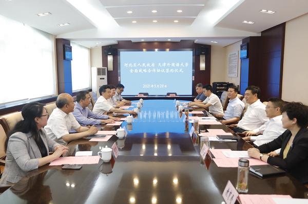 5月28日上午,我校与河北区人民政府举行全面战略合作协议签约仪式,就进一步深化校地合作进行座谈交流。河北区区委书记刘志强,区委副书记、区长徐刚,区委常委、区委组织部部长赵鸣,副区长刘冬云,我校党委书记殷奇、党委副书记、校长陈法春、副校长程国毅出席。会上,刘冬云和程国毅分别介绍了双方合作对接的相关情况。与会人员就全面战略合作相关事宜以及双方优势互补、共同发展等工作进行了深入交流。徐刚与陈法春代表河北区人民政府和米兰网页版进行了签约。殷奇、陈法春表示,长久以来我校与河北区建立了良好的合作互动关系,天津外大附属外国语学校在区域强有力的支持下,办学竞争力、影响力不断提升。期待以此次签约为新的起点,充分发挥我校教育人才等资源优势,与河北区开展更广泛更深入的合作,为河北区教育事业发展做出新的更大贡献。刘志强、徐刚对我校一直以来给予河北区的支持表示感谢。他们强调,教育兴则全区兴,近年来,河北区坚决贯彻落实习近平总书记关于教育的重要论述,持续加大工作力度,推动教育事业高质量发展。希望今后进一步加强与我校的交流与合作,全力以赴做好服务,将我校及附属外国语学校先进的办学理念、办学模式、办学特色在河北区