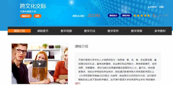 一、跨文化交际课程类型:线上线下混合式课程课程简介:本课程是米兰网页版非英语专业本科生的公共基础课。开设学期为大一下学期,2个学分,32学时。课程采用全英文教学、视频讲座、微课教学以及线上线下混合的教学形式,帮助学生提升跨文化能力。教学内容分为六个单元,每个单元分六个板块:跨文化理论(线上)、跨文化英语阅读(线上)、跨文化视角(线上)、国际传播(线上)、案例分析(线下)、作业和实践练习(线下)。线上课程重点拓展跨文化知识、英语技能、锻炼批判性思维能力,补充国际传播知识和技巧,赋能课堂教学。线下课程通过案例实践和丰富的课堂活动,锻炼学生的应用和实操能力。虚拟数字人进行章节介绍,提升学习兴趣。设置作业和实践指导,为学生参加英语类竞赛做好准备。课程SPOC平台和网址:超星学习通:https://mooc1.chaoxing.com/courseans/ps/216490766课程特色与创新:开展线上线下混合式教学,以学生需求和专业需求为指导,充分发挥院校特色和资源优势,将语言知识、语言技能、思维训练、人格培养有机融合。课程在改革与建设中以体验式学习理论和OBE教学理论为基础,将虚拟仿真人
