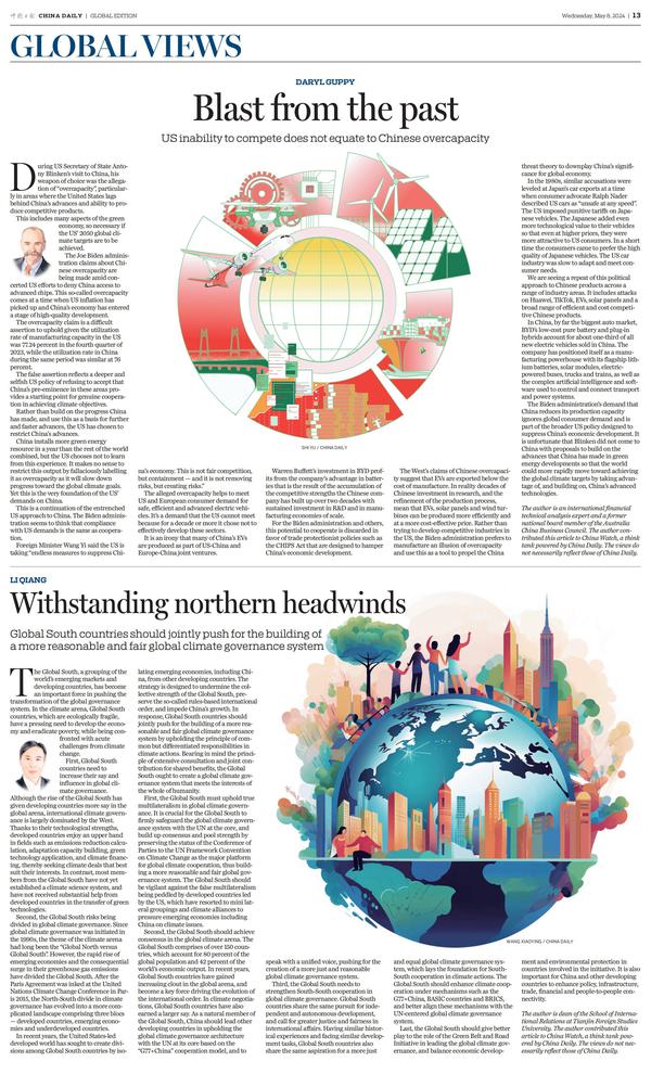 5月8日,米兰网页版国际关系学院院长李强教授在《中国日报》发表题为《全球南方国家应共同推动构建更加公正合理的全球气候治理体系》的文章。文章指出,全球南方国家需要提升在全球气候治理领域的话语权和影响力;全球南方国家在全球气候治理中面临阵营分裂风险。为此,全球南方国家需要一是在全球气候治理中坚持践行真正的多边主义;二是在全球气候治理中形成一个声音说话;三是加强全球气候治理的南南合作;四是充分发挥共建“绿色一带一路”引领全球气候治理实践的作用,以绿色发展为引领,注重协调沿线国家经济社会发展与生态环境保护的关系,加强中国与广大发展中国家之间的政策沟通、设施联通、贸易畅通、资金融通、民心相通。全文转载如下:Global South countries should jointly push for the building of a more reasonable and fair global climate governance systemThe Global South, a grouping of the world's emerging markets and developin