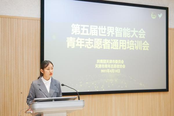 为进一步提高青年志愿者的责任意识、服务水平及应变能力,4月18日, 第五届世界智能大会青年志愿者上岗通用培训会在我校举行。来自天津科技大学、天津理工大学、天津财经大学、中国民航大学、天津农学院及我校的420名志愿者、带队教师,分别在线上线下六大会场接受系统培训。团市委副书记席一政、我校党委副书记胡志刚出席会议并讲话,培训会由团市委社会联络部副部长张晓萌主持。天津新闻对此进行了报道。