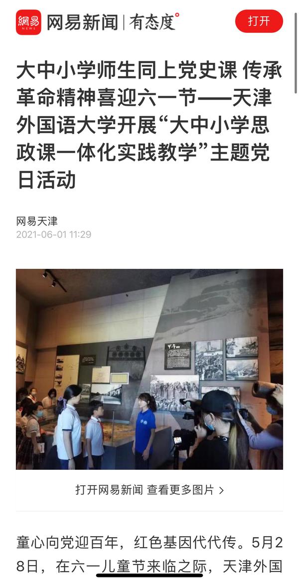6月1日,网易新闻以《大中小学师生同上党课 传承革命精神喜迎六一节------米兰网页版开展“大中小学思政课一体化实践教学”主题党日活动》为题进行了报道。