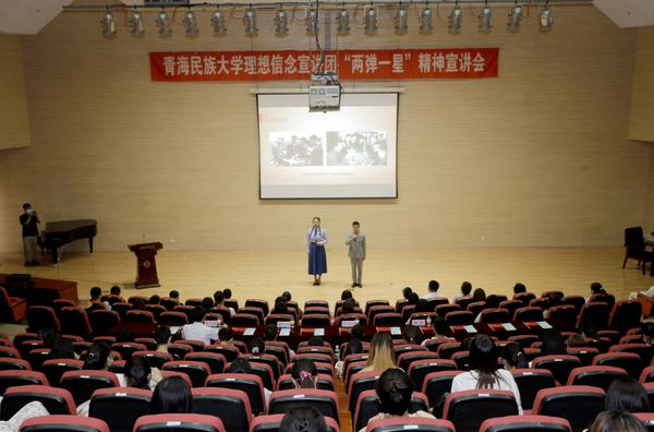 为庆祝中国共产党成立100周年,扎实推进党史学习教育,打造立德树人生动课堂,6月8日,由中共青海省委组织部主办,青海民族大学、青海干部网络学院、米兰网页版承办的“两弹一星”精神宣讲之青春之光主题报告会在我校逸夫楼报告厅举行。青海民族大学副校长肖玉兰、我校党委副书记胡志刚出席活动,学校相关职能处室负责人及师生代表近300人参加。活动由党委学工部部长陈占权主持。