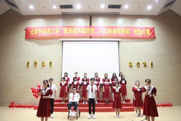 比赛在同学们对祖国的深情歌唱中拉开帷幕,《少年中国说》铿锵有力,《唱支山歌给党听》宛转悠扬,改编歌曲《党旗飘扬的方向》用双语表达了对祖国的热爱,《在希望的田野上》以歌伴舞形式展现出人民对于建设美丽家乡的热情和斗志,《没有共产党就没有新中国》唱出了青年学子感党恩、听党话、跟党走的坚定信念。活动最后,全场挥舞小国旗,齐声高唱《我和我的祖国》,将气氛推至最高点,师生共同用歌声表达对党的百年华诞最真挚的祝福。