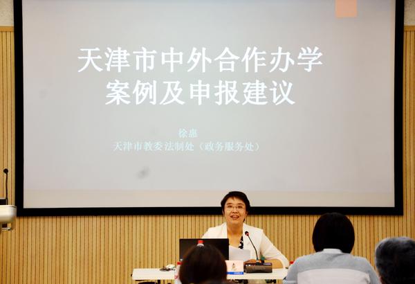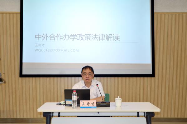 会议邀请到教育部中外合作办学项目知名评审专家、教育部中外合作办学机构评审法律专家、评估专家王奇才和天津市教委法制处(政务服务处)徐惠分别做中外合作办学项目申报政策专题讲座。王奇才从坚持正确办学方向、办学主体、资源引进、办学活动以及中外合作办学申报的要点等五个方面,做了题为“中外合作办学准入审批的若干要点”的专题讲座,并就我校相关学院提出的问题进行了详细的解答。徐惠就天津市各高校、全国外语类院校已有中外合作办学项目情况,及适合我校申报中外合作项目的专业作了具体分析。