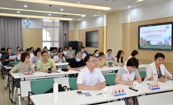 6月18日下午,我校在逸夫楼大江厅组织召开了求索高端学术论坛暨外事工作制度解读会。副校长李迎迎出席,各相关教学科研单位党政主要负责人、分管外事工作副院长(负责人)、外事秘书等30余人参会。会议由国际合作与交流处处长张占奇主持。