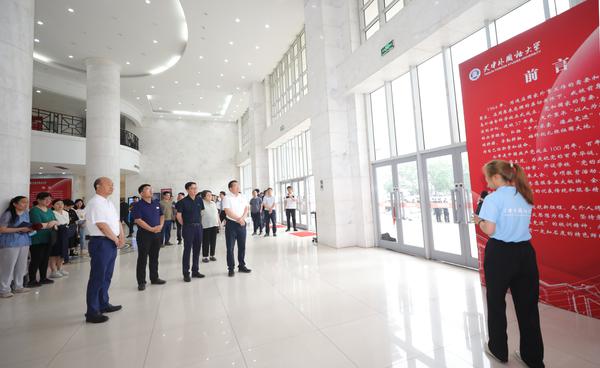 百年征程波澜壮阔,百年初心历久弥坚。6月25日上午,我校“不忘初心谋发展 砥砺奋进谱新篇”庆祝中国共产党成立100周年珍贵档案实物展在逸夫楼大厅成功开幕,校党委书记殷奇,市教育两委统战处处长祝建、学生处处长杨明出席,机关党员干部代表及部分退休老党员代表参加了开幕式。开幕式由副校长程国毅主持。