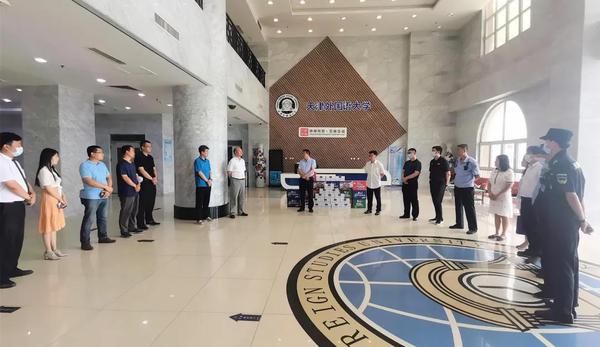 近日,校领导一行检查校园施工进度和开学前准备情况,慰问看望暑假期间坚守岗位的教职员工,并为他们送上防暑降温慰问品。校办公室等有关人员陪同。