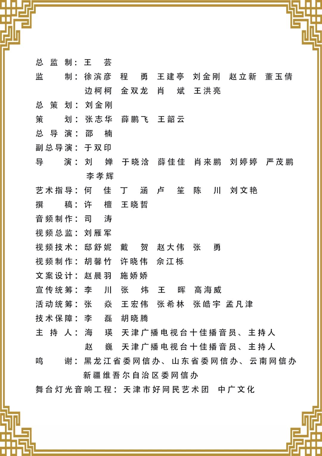 晚会由网信天津、津云新媒体集团、天津市好网民艺术团、中广文化承办,天津歌舞剧院、天津市群众艺术馆、天津市短视频协会协办。黑龙江省委网信办、山东省委网信办、云南省委网信办、新疆维吾尔自治区委网信办共同参加晚会录制。