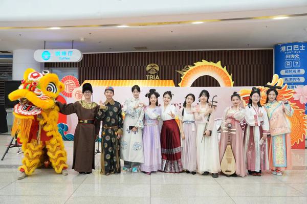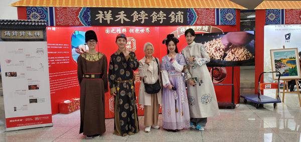 志愿服务的学生担任仪式主持人的现场翻译,他们活跃在多个展位,向来自世界各地的游客介绍杨柳青年画、老美华手工鞋、桂发祥十八街麻花、泥人张等极具津城风情的非遗文化;为游客提供旅游宣传引导,向他们推荐天津著名景点及线路,诚挚邀请外国友人到五大道风景区赏花参观;耐心教会游客使用微信支付、使用软件打车,同时展示中国汉服文化,吸引了许多好奇的游客与身着汉服的他们合影留念。“Welcome to Tianjin!”“Have a nice day!”学生们的热情服务给外国游客们留下了十分深刻的印象。在协助采访外国游客的过程中,流利的英语频频得到称赞:“Your English is very good!”