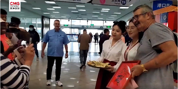 求索学生身着汉服,自信大方地用流利的英文介绍天津的历史文化与风土人情,与外国游客互动交流,展现了天外学子的良好精神风貌和英文专业素养,也向世界各地的游客展现了天津现代化大都市形象以及优秀的中国传统文化。天津媒体对天外志愿者们进行了采访,对于学生的良好表现给予高度评价,称赞他们是欢迎仪式上的一道亮丽风景线。