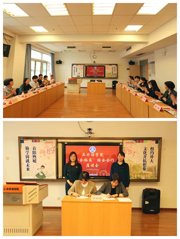 亚非语学院党总支书记张海梅介绍了学院基本情况、人才培养模式、毕业生情况等,表示将进一步了解用人单位对毕业生专业知识、实践能力、综合素质方面的培养需求,推动学院与企业在人才培养、产教融合等方面开展深入合作,开创互利合作共赢的新局面。亚非语学院党总支副书记张蕾代表学院与天津坤钰国际贸易有限公司、天津少年得到科技有限公司签署了共建实习实践基地协议。