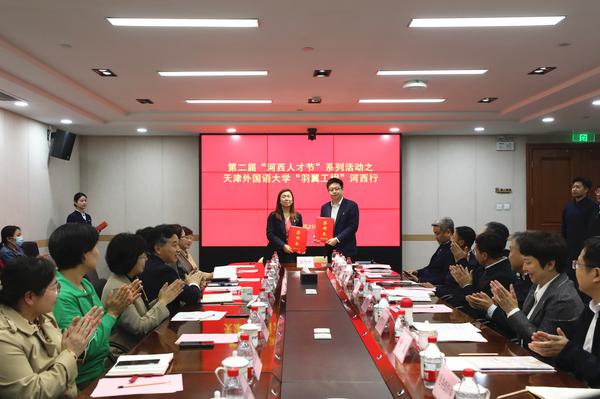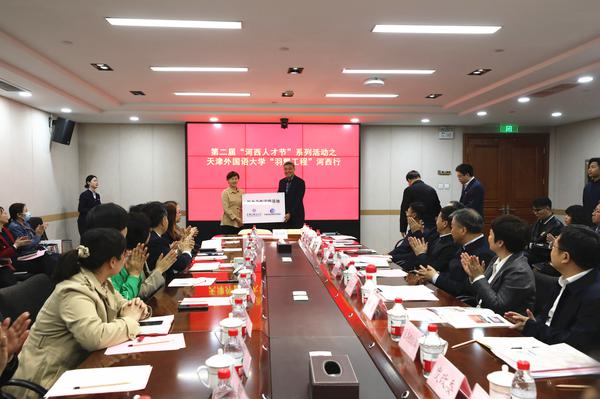 会上,天津多式联运航运协会会长魏波介绍了协会的发展历程、服务方向、河西国际航运服务集聚区服务中心情况及引才需求;我校向天津多式联运航运协会授牌共建实习实践基地,为河西区优秀企业经营管理人才代表颁发企业HR行业导师聘书;桃园街道党工委、大营门街道党工委分别与欧洲语言文化学院、英语学院签署党建共建协议。
