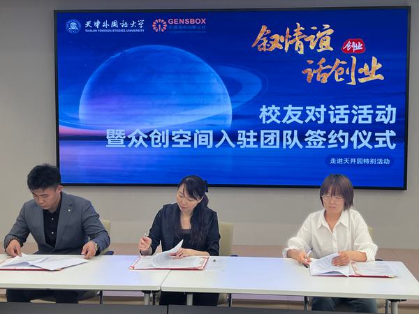 活动现场,余江分别为我校2003级朝鲜语专业校友、天津爱仕凯睿科技发展有限公司总经理倪嘉辉,2002级德语专业校友、天津寓米科技发展有限公司副总经理李萌,2002级日语专业校友、天津市贝尔思库教育信息咨询有限公司总经理李琳,2016级金融学专业校友、天津北洋海棠创业投资管理有限公司投资管理部经理赵华琛颁发了校友创业导师聘书,他们将作为入驻众创空间创业团队的导师,直接参与创业孵化过程。众创空间企业运营主体、招生就业处及四支创新创业学生团队共同签署了入驻协议和孵化责任书。