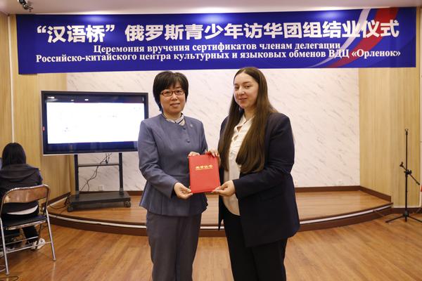 带队教师卡捷琳娜代读了“小鹰”全俄儿童中心主任亚·瓦·杰乌斯主任写给天外团队的感谢信。她表示,感谢中国教育部中外语言交流合作中心给予“小鹰”团组的此次机会,感谢米兰网页版专业的师生团队为大家带来终生难忘的体验。过去两周的汉语学习和文化体验,为团组所有营员打开了一扇走近中文、走近中国文化的大门。“小鹰”全俄儿童中心愿以本次中国之行为契机,与中国朋友加深友谊、并肩前行,同道相宜、相得益彰。