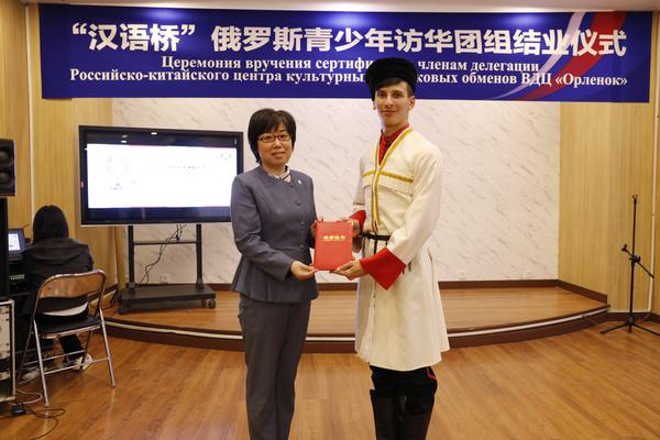 4月23日下午,“汉语桥”俄罗斯青少年访华团组结业仪式暨“共话中俄友谊”欢送会在国际交流中心二楼多功能厅举行。副校长李迎迎出席。俄罗斯青少年访华团组全体成员,我校国际合作与交流处、欧洲语言文化学院师生代表参加。结业仪式由欧洲语言文化学院副院长付美艳主持。