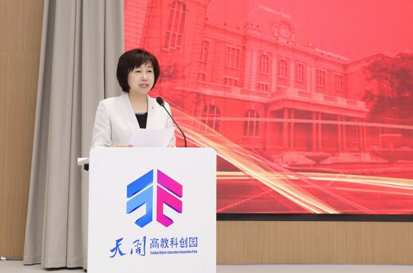 周红蕾代表学校对给予产业学院和人才培养基地指导和大力支持的各级领导和相关单位表示感谢。她指出,“天外策马ESG产业学院”和“天津市ESG人才培养基地”的成立,是学校深入学习贯彻党的二十大精神,贯彻落实习近平总书记视察天津重要讲话精神,紧扣新质生产力发展要求,持续深化新文科教育教学改革,推进产教融合、“政校企”合作,提升服务国家战略与地方社会经济发展能力的又一重要举措,也是天外向天开园成立一周年献礼的务实行动。