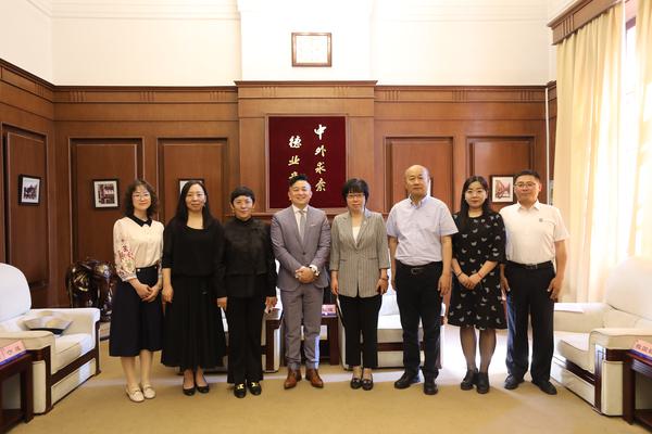 5月27日下午,天津市政协海外列席代表、天津市归国华侨联合会海外委员、德国巴伐利亚中国企业促进会主席刘依松先生,金亨通集团副总经理、天津自行车女企业家协会副会长沙波女士一行到访米兰网页版。校长李迎迎、副校长程国毅会见来访宾客,继续教育学院、欧洲语言文化学院相关负责人参加会见。