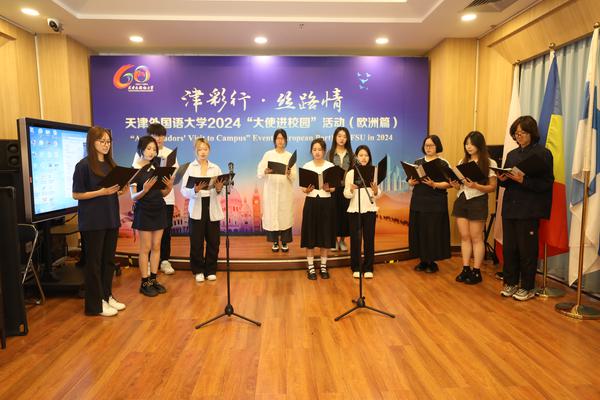 周红蕾指出,人文交流始终是中欧关系的重要基石。近年来,依托中欧高级别人文交流对话机制,双方在教育、文化、体育、科研人员流动、青年交流等领域开展了多层次交流与合作。学校与欧洲124所高校建有长期、稳定的合作交流关系,访问交流、学术研讨、师生互访不断,交流频繁,在俄罗斯、葡萄牙、匈牙利、乌克兰等欧洲4国建有孔子学院。在学校多年办学历程中,各语种专业特别是非通用语种专业得到了外国驻华使馆的大力支持,希望各位驻华使节以此次活动为契机,推动所在国更多高校与天外建立合作交流关系,推荐更多留学生到天津、到天外留学,招收更多的天外学生到所在国高校留学,双方合作开展更多的文化活动,深入推进两国文化交流、文明互鉴。