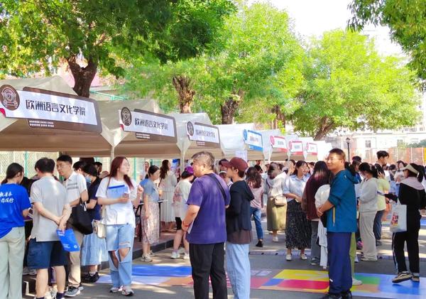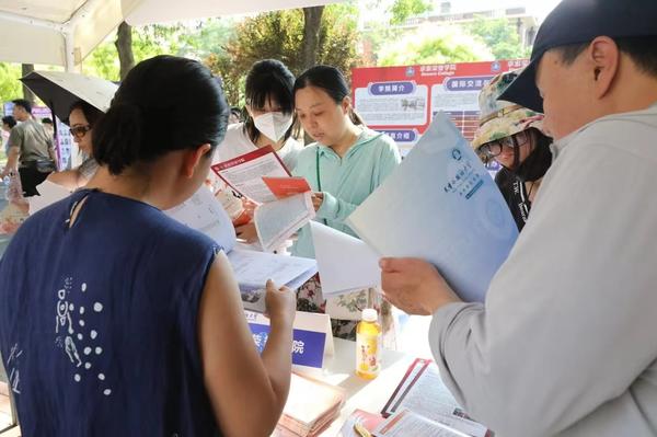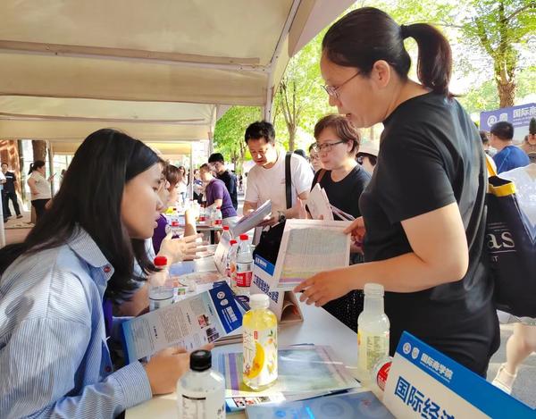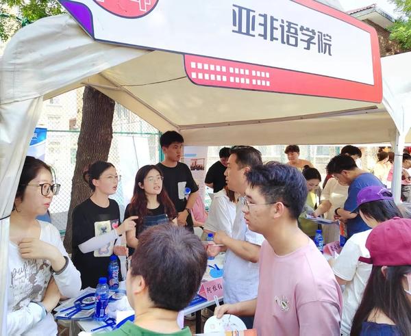 活动现场,考生王同学了解到英语学院的英法双语国际传播人才创新班采取“英语+法语+新闻传播学”的模式开展教学后,非常期望将来能够成为一名全方位发展的国际化人才;考生张同学心仪的是汉语言文学专业,了解到学校的中国文化传播拔尖人才创新班后,专程来到国际传媒学院了解详情,学院老师耐心地作出全面解答;同时,部分家长表示,从天外微信公众号上了解到学校最新成立的ESG产业学院以及跨国本硕联合培养项目,就业前景好、深造路径宽,在求索荣誉学院、欧洲语言文化学院、亚非语学院等展位上就录取后的细节进行咨询,得到了满意的答复。