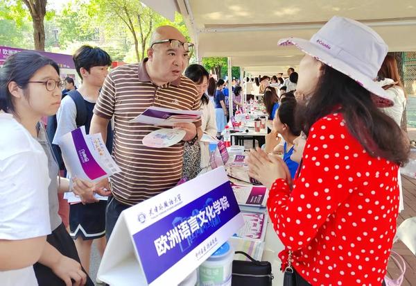 学校秉承为考生和家长办实事的理念,力求以最大的热情和最饱满的状态办好咨询会,全体本科生培养单位领导班子、专业教师、优秀在校生代表齐上阵,多角度、全方位为广大考生和家长们耐心解答关于招生专业详情、录取政策、升学就业等问题。招生办公室、教务处、研究生院、国际合作与交流处分别设立展位,综合展示学校本、硕、博及留学生教育等各层次人才培养情况。校史馆中,学生讲解员们将天外的“前世今生”娓娓道来,中外制度比较思政课重点实验室中,考生和家长们沉浸式体验了天外人才培养特色和思政育人模式。在大学生活动中心,本科生招生办公室重点对在津招生政策及特点悉数进行了讲解。校办公室、后勤管理处(基建处)、党委安工部、网信办、党委学工部、校团委等部门全力配合,咨询现场组织有序,使考生和家长感受到了天外人的真诚与温度。