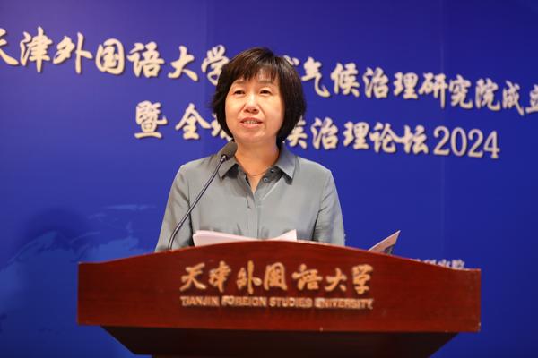 张弢在致辞中介绍了天津市在生态文明建设和绿色低碳发展研究等方面取得的重要成果。她希望天外全球气候治理研究院能够充分发挥高端智库作用,为全市高质量开展积极应对气候变化工作贡献力量,同时借助中国外文局当代中国与世界研究院理论与实践研究平台,形成习近平生态文明思想的大众化传播,带动更多人以更加绿色低碳的生活方式,汇聚起全社会节能降碳的磅礴力量。