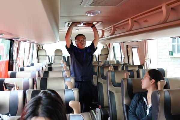 在客车上,驾驶员、安全专家讲解了客车发生火情、遇水坠水后,如何借助现有工具快速逃生。通过现场互动实操,帮助师生熟悉车辆应急出口位置、应急锤和灭火器使用方法,进一步提升了师生们的应急逃生技能操作水平。