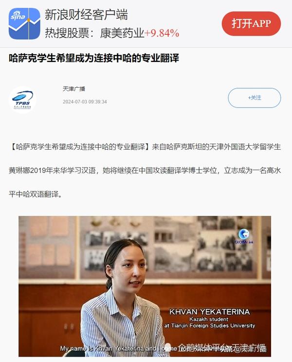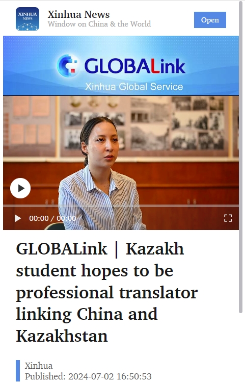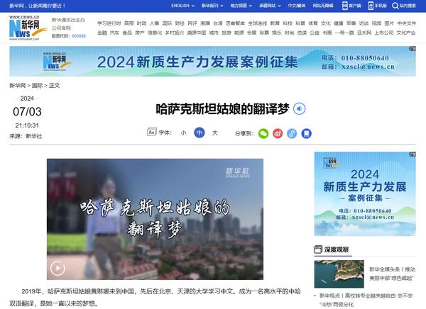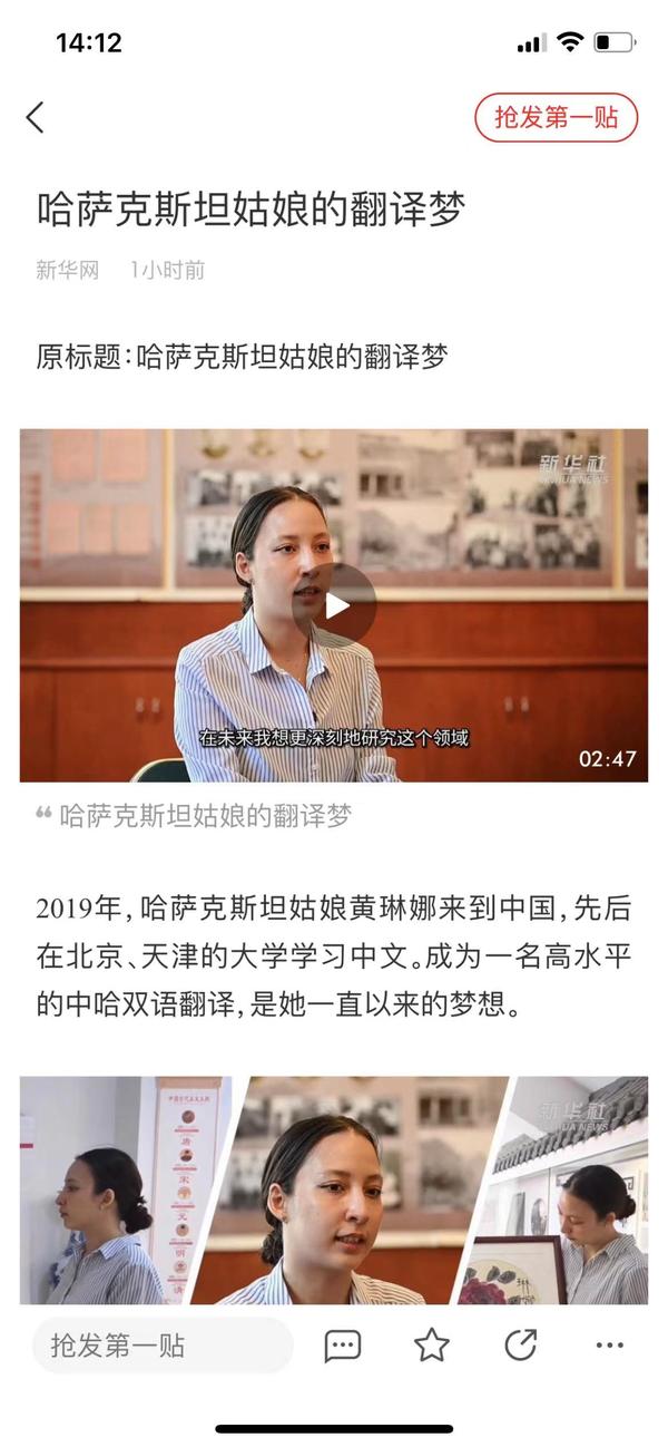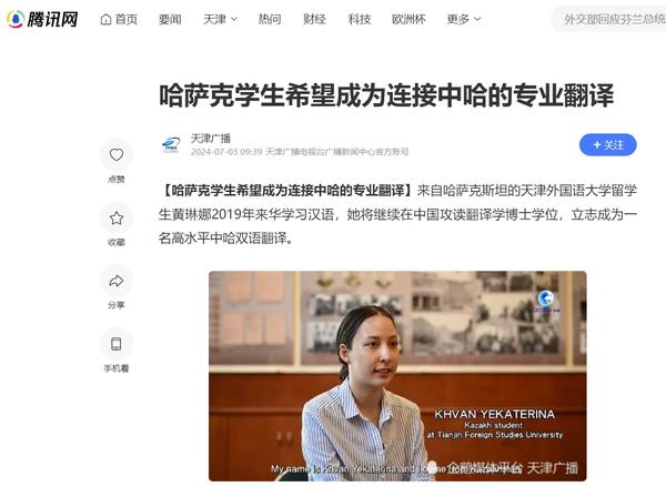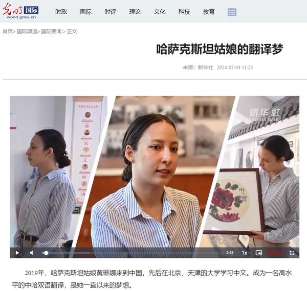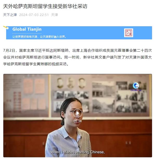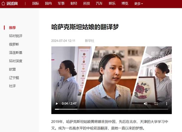 在7月2日国家主席习近平访问哈萨克斯坦之际,新华社英文客户端报道了天外哈萨克斯坦留学生黄琳娜的翻译梦,引发社会广泛关注。