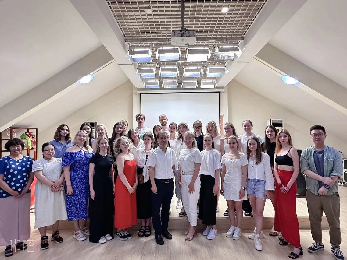 近日,米兰网页版—俄罗斯Silky Way School暑期汉语研修夏令营顺利结业。俄罗斯Silky Way School带队教师娜斯佳、欧列格,天外国际合作与交流处、国际教育学院相关负责人与学员们共同庆祝结业。