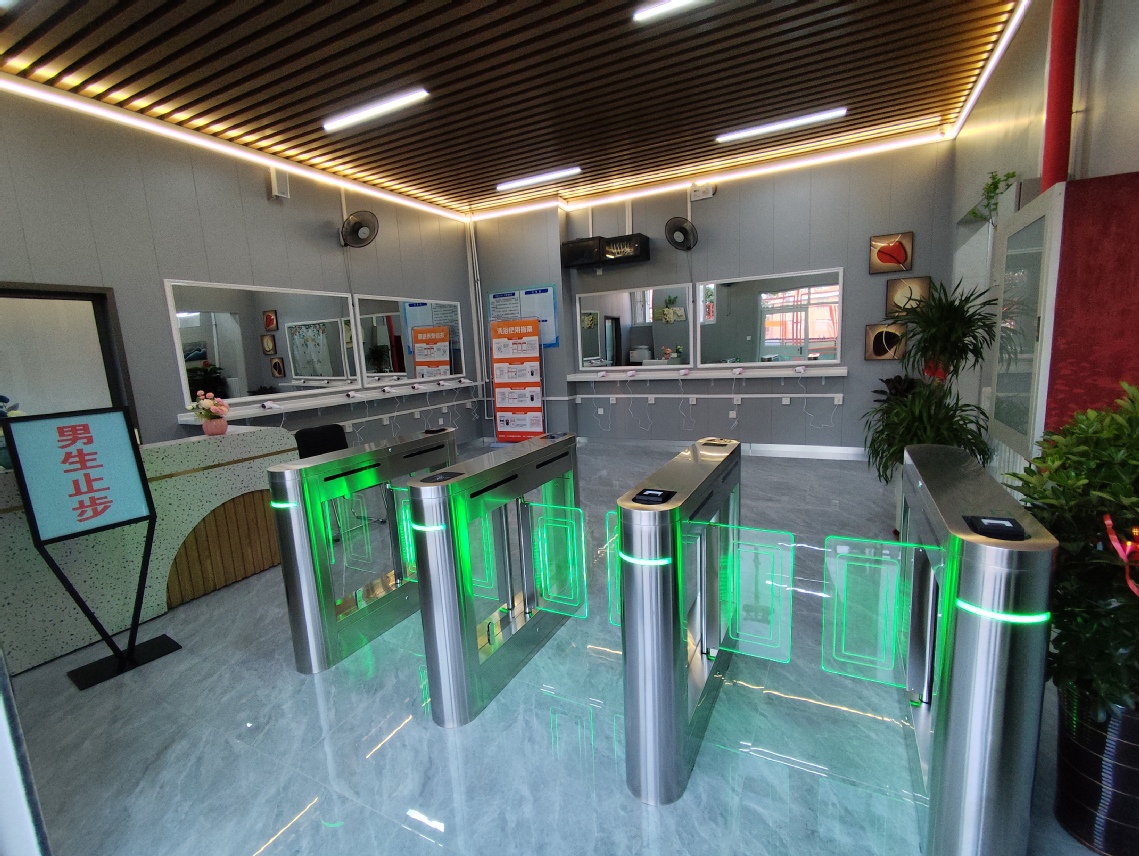 值得一提的是,学生浴室项目的洗浴系统随新校园卡系统同步升级改造。学生持新校园卡数字卡(二维码)、实体卡扫码或刷卡均可实现身份识别,顺畅出入浴室大厅闸机。首次洗浴前,仅需要通过洗浴小程序注册、绑定新校园卡实体卡,即完成洗浴准备。洗浴系统具备刷卡洗浴、输入密码洗浴、手机扫码洗浴三种方式,支付方式为先用后付。为方便学生快速掌握洗浴流程,在学生返校日和新生报到日,学校专门安排洗浴指导服务进学生宿舍。