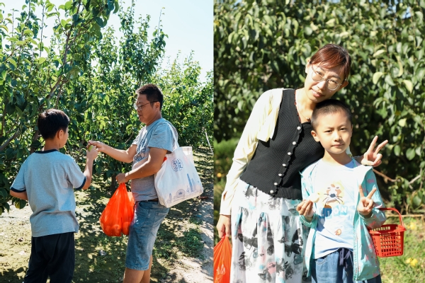 大家来到梨园采摘品尝当季鲜梨,接触大自然,拥抱秋天;走进农产品陈列展示区,尽享优质谷物、新鲜瓜果等特色展品带来的丰收喜悦;积极参与吃玉米比赛、幸运套圈等趣味游戏,老师们和孩子们争先恐后,笑语连连。