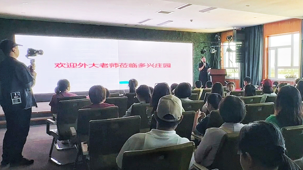 多兴庄园农业科技开发有限公司总经理薄春霞致欢迎词,并分享了农业科技和食品健康的科普知识。离退休工作处处长朱国宾对公司的精心安排表示感谢。