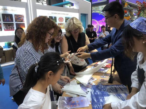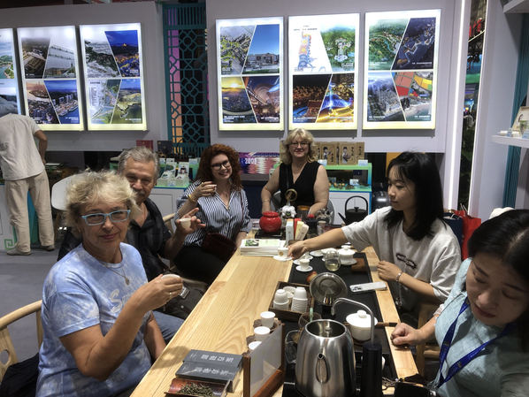 专家们纷纷在省市馆富有中国文化特色的体验项目中驻足欣赏。当来到福建展馆时,专家们一起体验了具有中国特色的茶道文化,现场品尝了福建著名的武夷岩茶;在云南展馆,专家们体验了中国传统扎染技术,自己动手制作了一方扎染方巾留为纪念,并纷纷表示,被传统的扎染技术所惊艳。