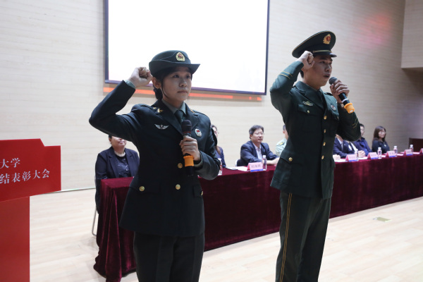 9月30日上午,米兰网页版2023级学生军训总结表彰大会在两校区同时举行。河西区委常委、区人民武装部部长黄孝喜,滨海新区大港人民武装部政治委员季大省,武警天津总队某支队副政治委员王风良,米兰网页版党委书记周红蕾,校长李迎迎,校党委副书记胡志刚,副校长余江以及相关职能处室、各学院负责人出席了本次大会。