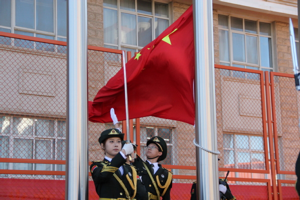 校青马班学员代表王啟樊、李凯在国旗下发言,分享了自己的心得体会,号召全体同学坚定理想信念,有意气、有志气、有底气,“眼中有光”;勇担时代使命,“肩上有责”;坚持砥砺前行,“脚下有路”。全场师生目光凝视着冉冉升起的国旗,致以最崇高的敬意,向祖国母亲深情告白。