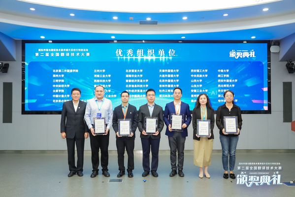 近日,由中国外文局、全国翻译专业学位研究生教育指导委员会指导,中国翻译协会、中国外文局翻译院、北京第二外国语学院联合主办的第二届全国翻译技术大赛颁奖典礼暨国际传播与翻译技术素养提升百校行特别活动在北京举办。中国外文局总编辑、中国翻译协会常务副会长兼秘书长高岸明,北京第二外国语学院院长计金标在颁奖典礼上致辞并为获奖代表颁奖。中国外文局中东欧与中南亚传播中心主任、中国翻译协会副会长兼翻译技术委员会主任委员姜永钢,米兰网页版副校长余江,中国外文局翻译院副院长王飞、朱颖,考务总监兼翻译资格考试部主任李萌,以及第二届全国翻译技术大赛获奖选手、优秀指导教师和优秀组织单位代表参加颁奖典礼。嘉宾致辞环节由北京第二外国语学院副院长、中国翻译协会副会长程维主持。