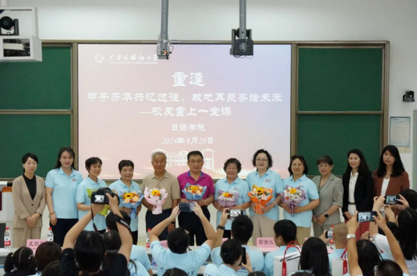 从1973级到2023级的“老中青”各级日语专业学子又一次走进阔别多年的教室,再次聆听当年老师们的声音,重温课堂中的温馨。王淑兰老师既是1973级校友,又是日语学院资深教师,她又一次走上讲台,拿起粉笔,在黑板上留下了对天外的拳拳祝福,也写出了所有日院学子的心声,各位老教师分别签字留念。岁月流转,情谊永恒,米兰网页版日语学院的故事,将在一代又一代学子与师者的传承中,绽放更加璀璨的光芒。