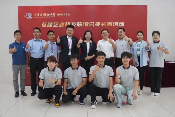 继续教育学院隆重召开首届企业校友联谊会,诚挚邀请天津蒙瑞教育集团、北京托普赛斯国际教育科技有限公司、天津哲欣教育集团、睿利天成培训学校等,来自18家常年来支持学院发展、助力学校走好国际化办学之路、服务经济社会高质量发展的企业校友参加了活动。副校长程国毅出席活动并发表了致辞,他对企业校友多年来对天外的支持表示感谢,期待企业校友们能持续推进校企深度合作,充分发挥各自优势,在教育创新、人才培养、社会服务等领域取得更大的实绩,实现互利共赢。活动气氛在程国毅副校长为蒙瑞、托普赛斯和哲欣颁发捐赠证书的仪式中达到了高潮。众多企业校友在签名寄语墙上留下了对天外未来最美好的祝愿,并在交流环节讲述了各自与天外的合作故事,共叙与天外结下的友谊之情。