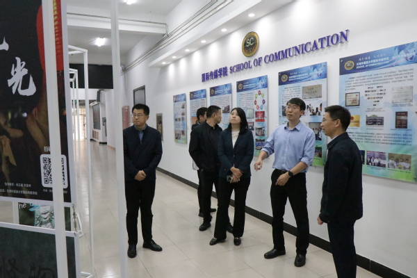 调研过程中,市委宣传部一行参观了国际传媒学院实验室,观摩了课堂教学。参观了国际传媒学院2024届毕业生作品展,观看了天外师生参加市委宣传部“行进天津”等活动并多次荣获大奖的视频,并在第一教学楼114会议室与天外教师进行交流座谈。