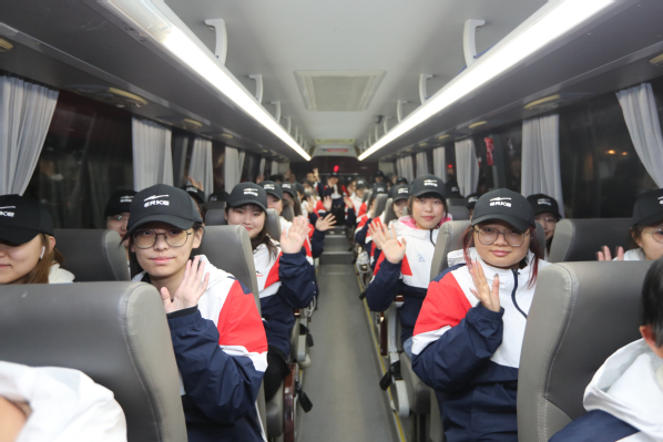 凌晨4点,天外志愿者们已整装待发,有序地登上大巴车,只为确保能够准时到达各自的服务岗位。
