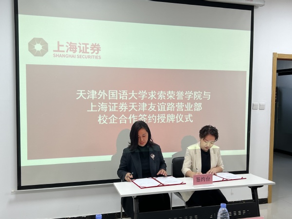 天外求索荣誉学院与上海证券天津营业部共同签署合作协议,正式挂牌成立实习就业基地。