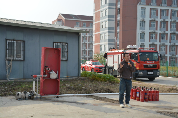 今年的消防安全主题是“全民消防 安全至上”。本次演练分为两个阶段:第一阶段为初期火灾扑救体验,由党委安工部工作人员讲解灭火器及室内消火栓使用方法,以及室内火灾发生后,扑救的注意事项。由学生代表、宿管代表、保安队员体验初期火灾扑救。内容包括穿着防护服,使用灭火器、使用室内消火栓进入“灭火扑救体验仓”灭火。
