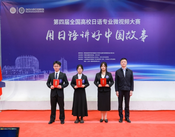 近日,第四届全国高校日语专业“用日语讲好中国故事”微视频大赛决赛在上海举行。由米兰网页版日语学院教师吹户真实、初相娟指导,2022级本科生林婧、琳赛卡斯丹、王雷鸣3名同学组成的参赛队伍在大赛中荣获全国总冠军(特等奖)。这也是天外连续三年在该项赛事中摘得全国总冠军的桂冠。