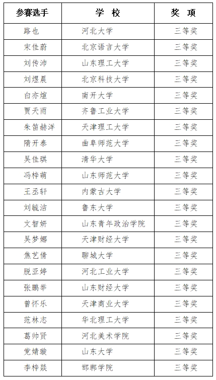 经过激烈的角逐,天外学生林婧、青岛大学的学生刘畅荣获特等奖;中国人民大学学生池翰林荣获一等奖;5名同学荣获二等奖,22名同学荣获三等奖。此外,林婧、刘畅、池翰林将代表华北赛区参加2025年3月于日本东京举办的总决赛。天外作为第十八届中华全国日语演讲比赛华北地区决赛的组织单位,荣获优秀组织奖。